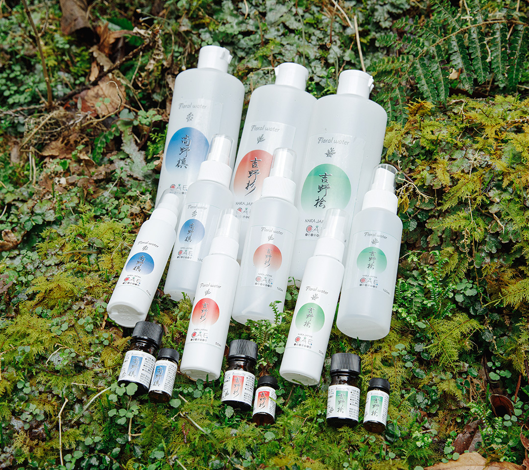 神武東征伝説や修験者が修行をする山々がそびえる奥大和。古(いにしえ)からの山々が含み置く豊かで自然に満ち溢れた水が山の木々の命をつないでいく。奥大和といわれる奈良県東部、南部にはたくさんの名水が湧き出ており、この名水で育った木々から精油を採取しています。木々の力強く生きてきた恵みを我々が引き継ぎ、木々への感謝を忘れず作り上げました。